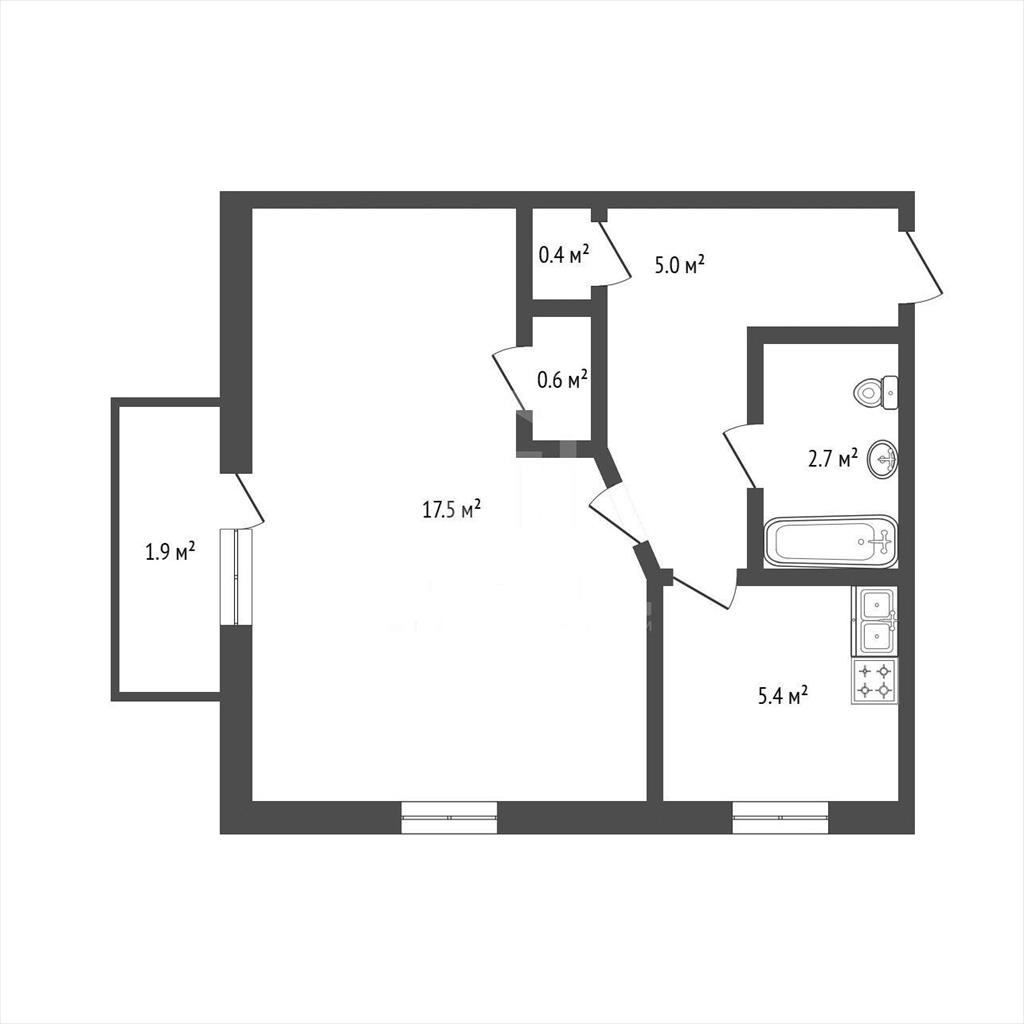 общая 31,6 м2, жилая 17,5 м2, кухни 5,4 м2 |