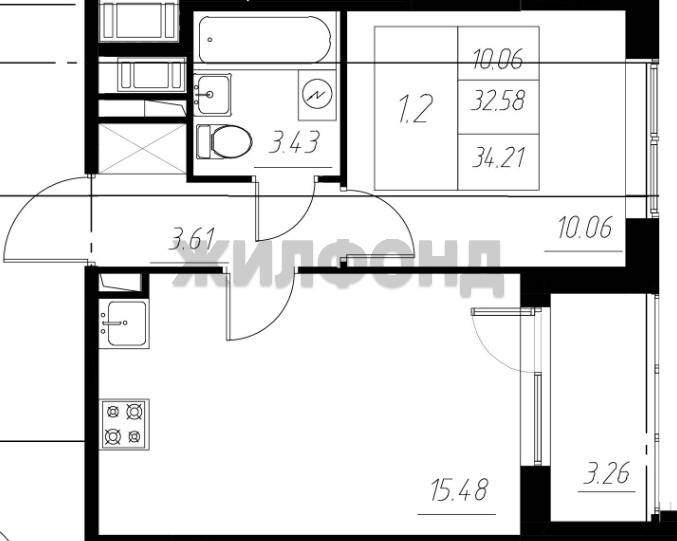 Однокомнатная квартира 34,21 м2 по ул. 1-й Предпортовый проезд 11стр1 за 9610000 руб. |