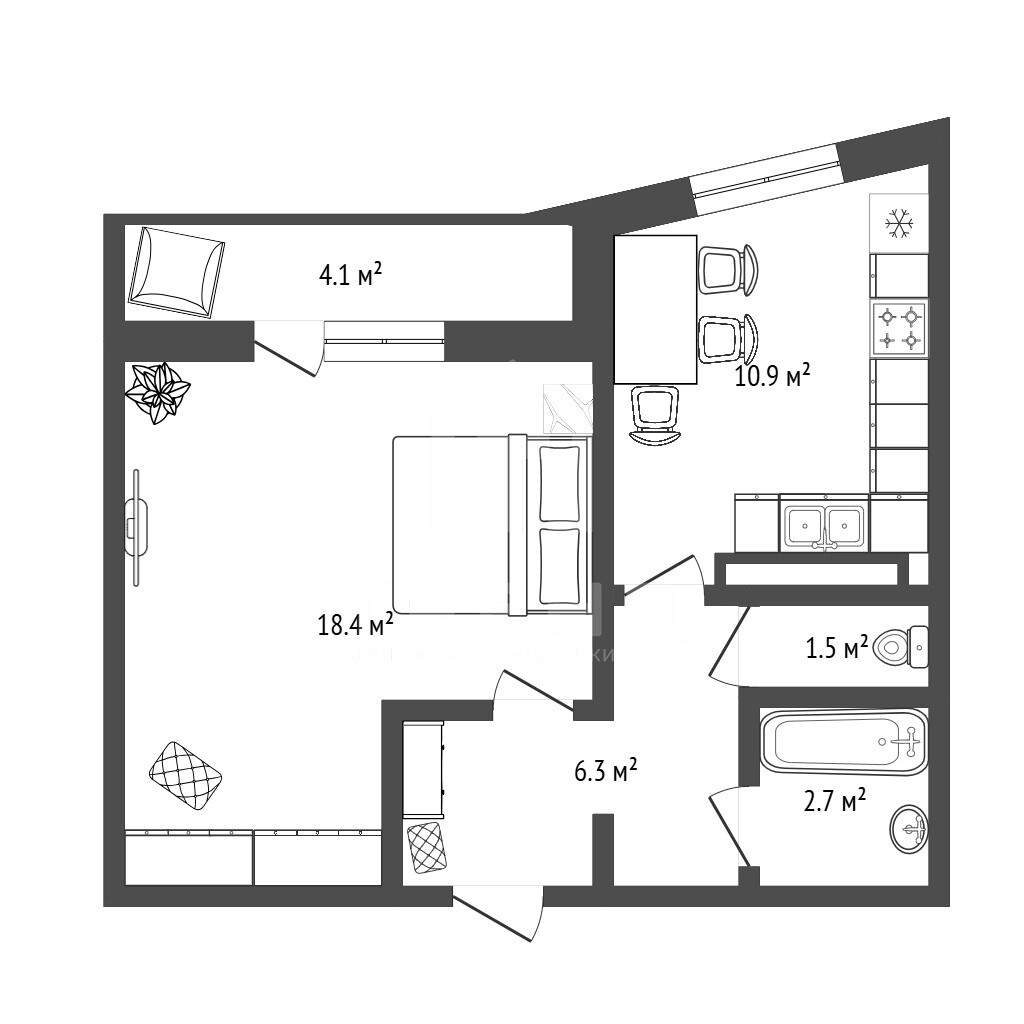 | Однокомнатная квартира по ул. Ново-Александровская, 14 в Санкт-Петербурге |