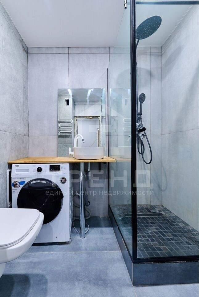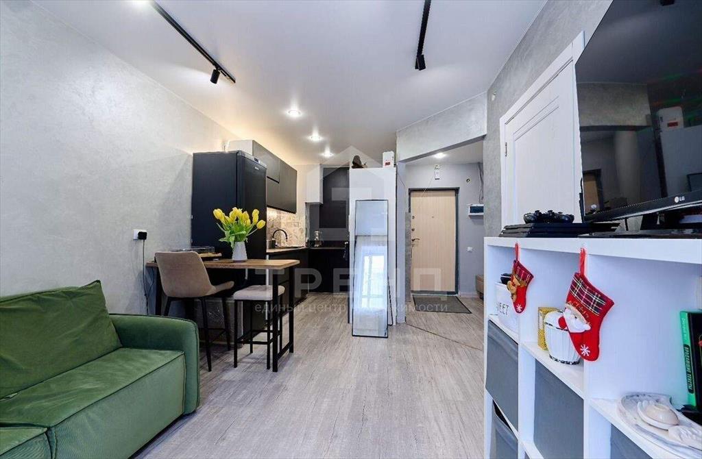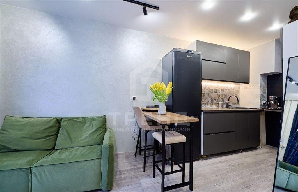 Общая площадь квартиры составляет 33,1 кв. м, из которых 11,06 кв. м занимает жилая площадь, а 14,8 кв. м - кухня. Высота потолков - 2,6 метра.