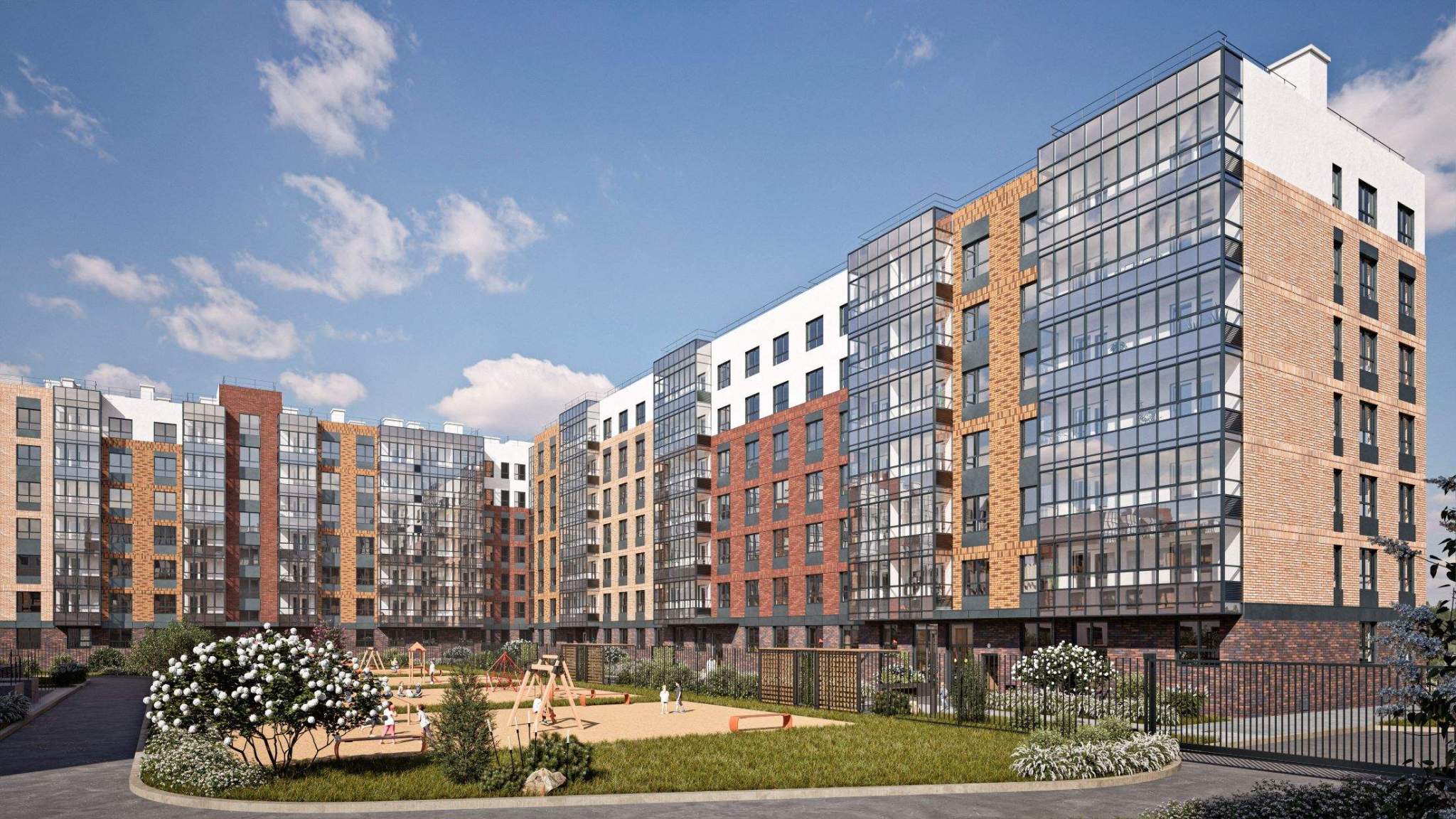 Это квартал формата «город в городе», в котором изначально заложено все то, что так важно в повседневной жизни. Детские сады и школа, обустроенные паркинги, много мест для прогулок, отдыха и игр, полезные магазины и уютные кафе.
