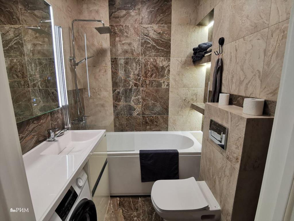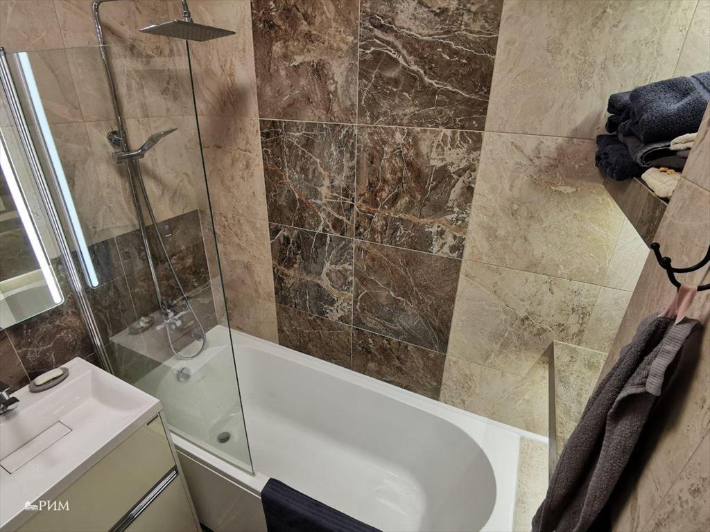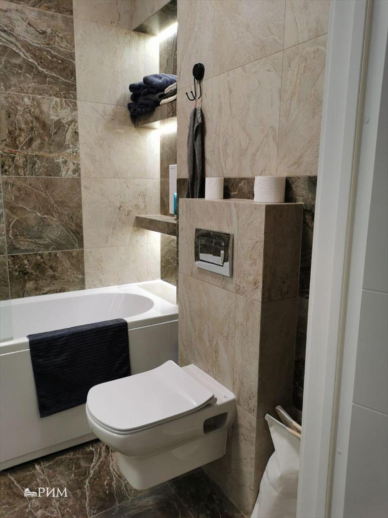 Санузел: совмещённая комната со свежей отделкой высококлассной керамической плиткой, комфортной ванной и душевым уголком.