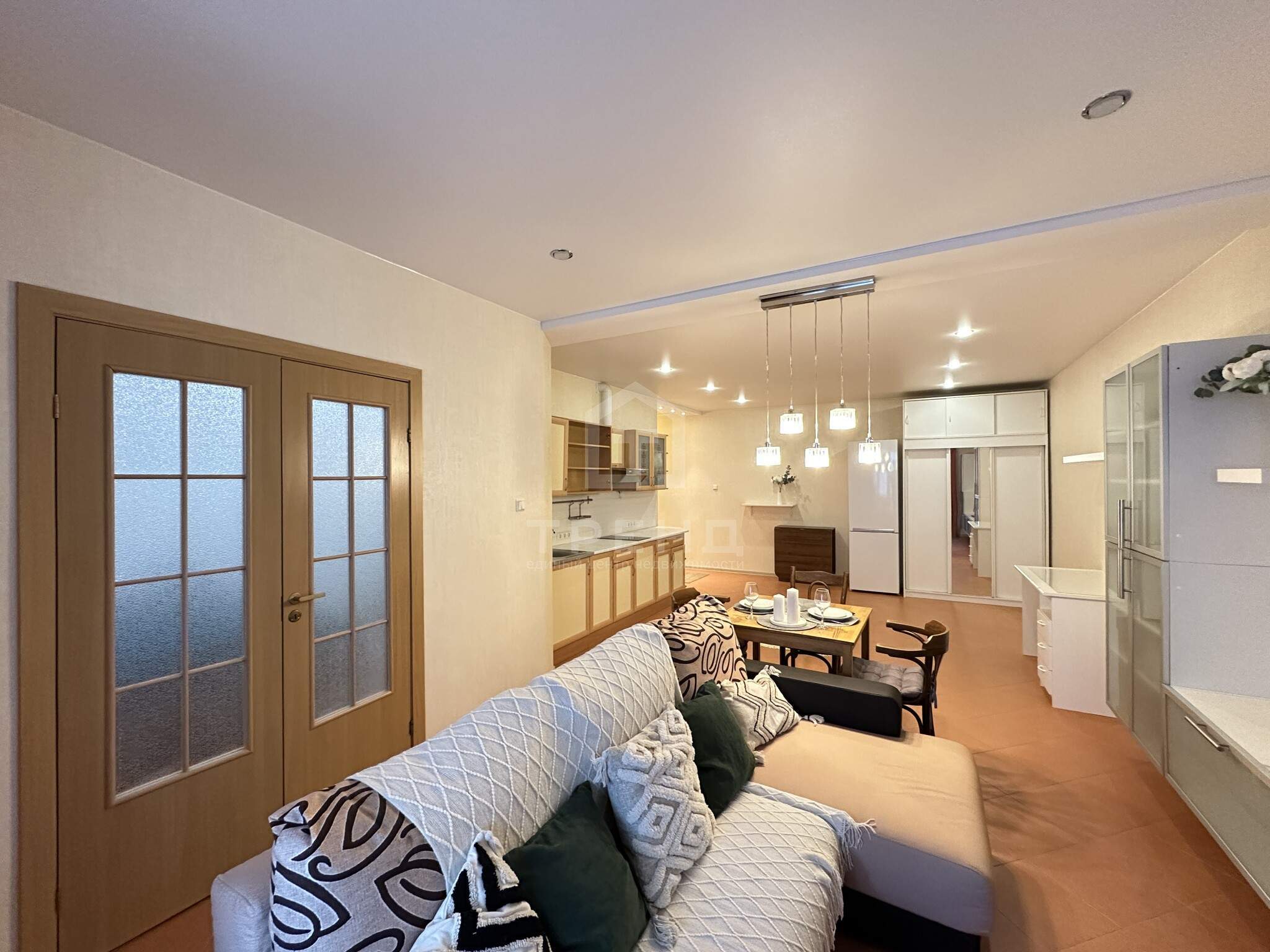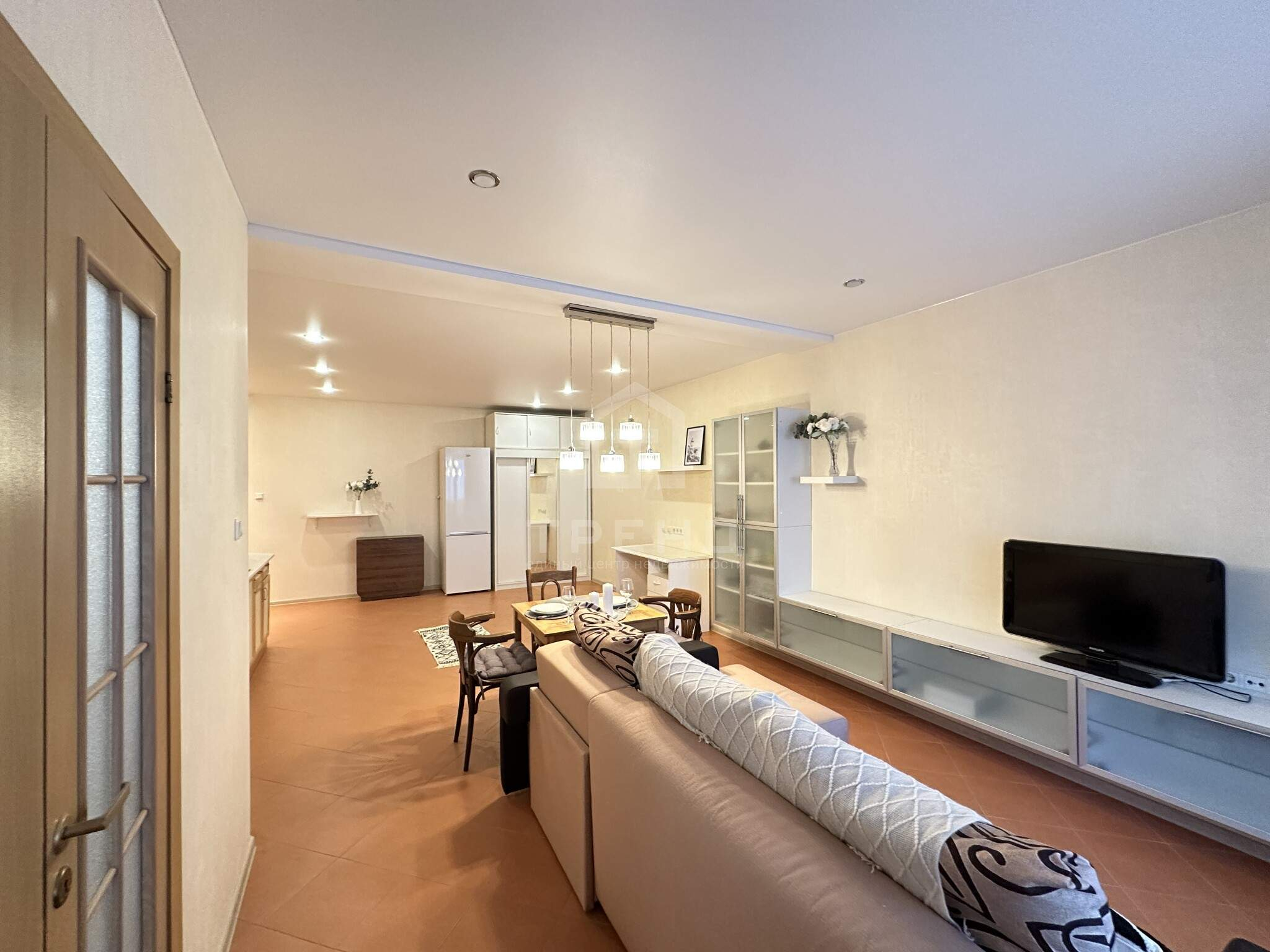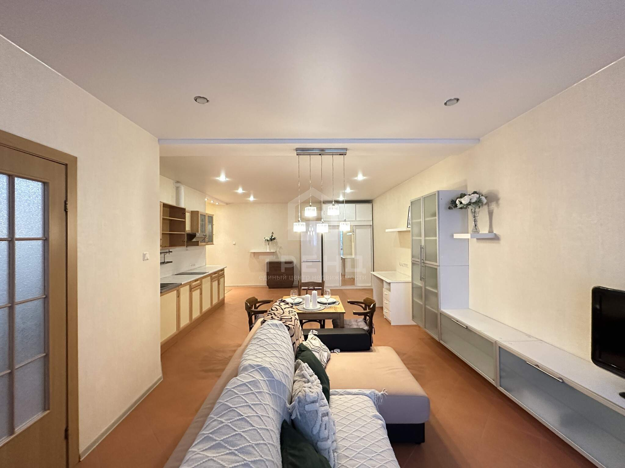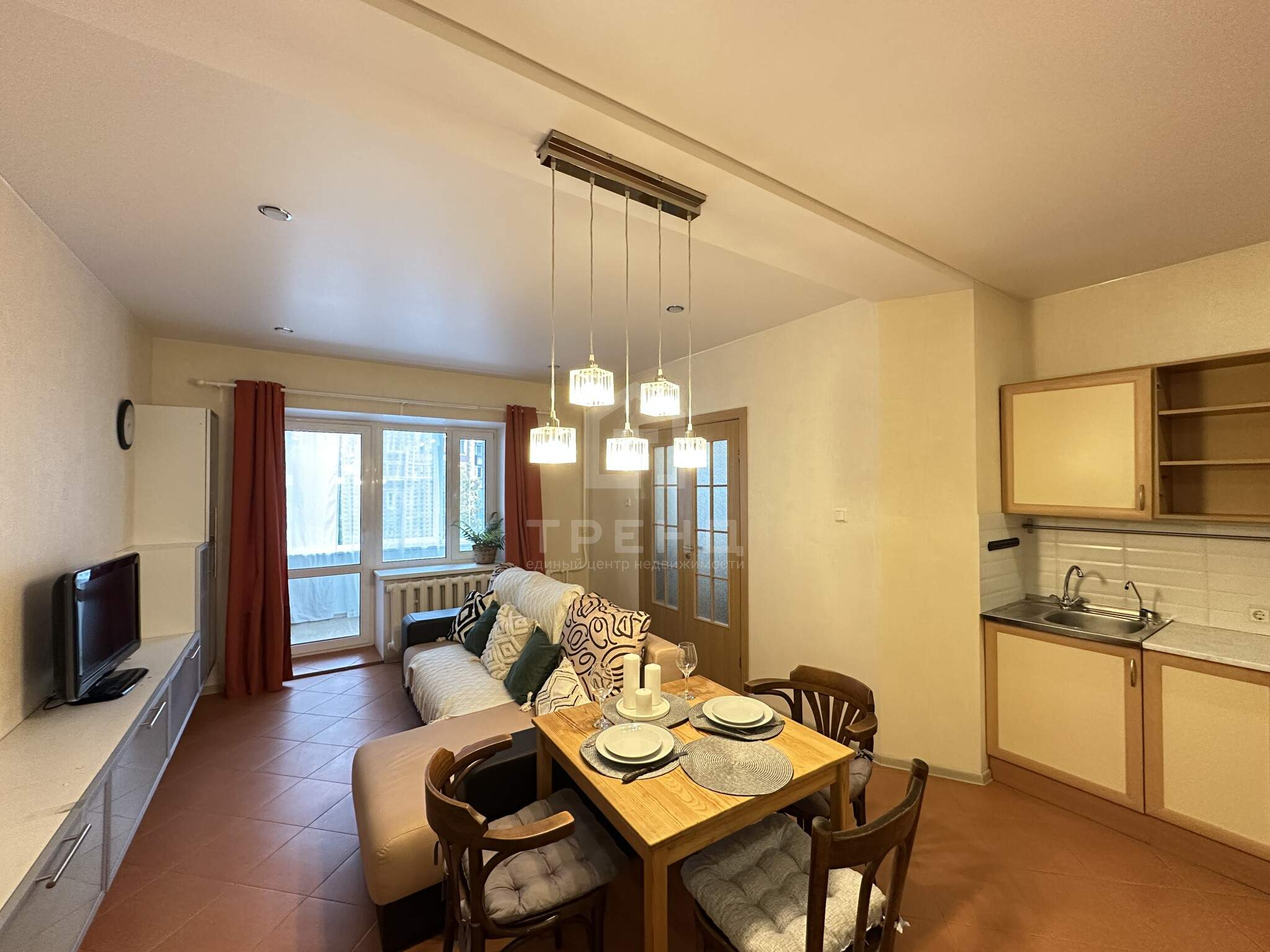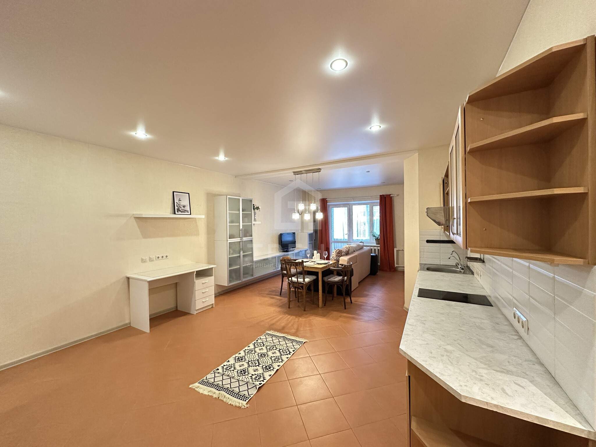 - Европланировка: спальня и просторная кухня-гостиная