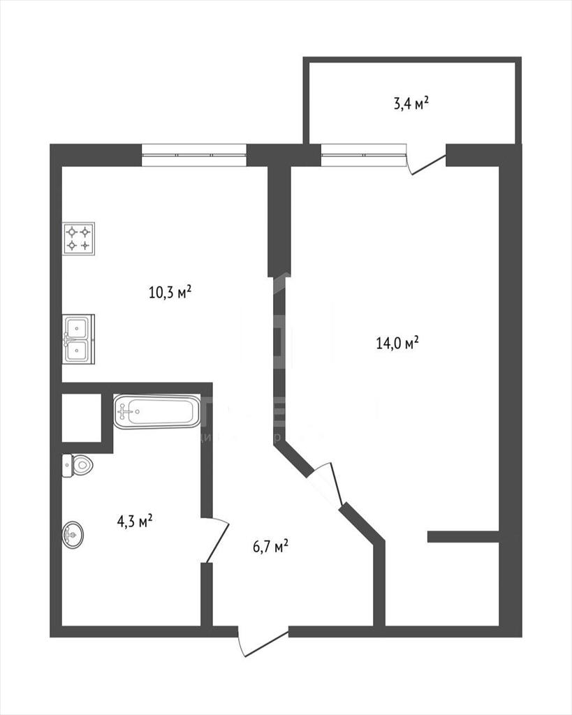 общая 36,6 м2, жилая 14 м2, кухни 10,3 м2 |