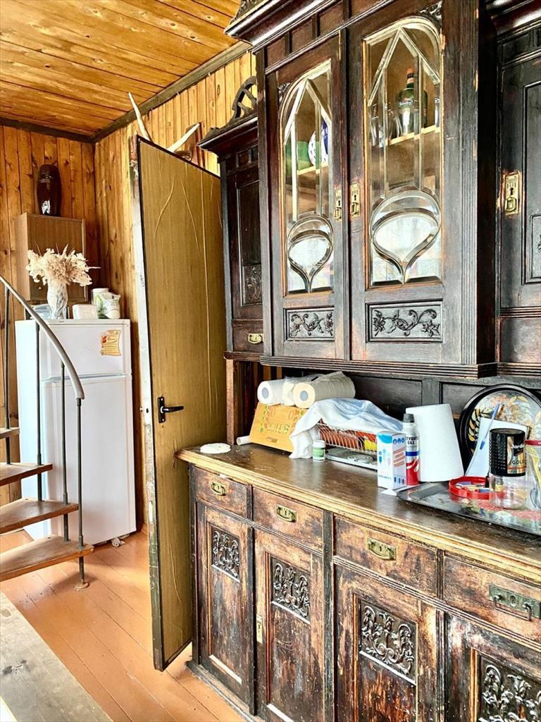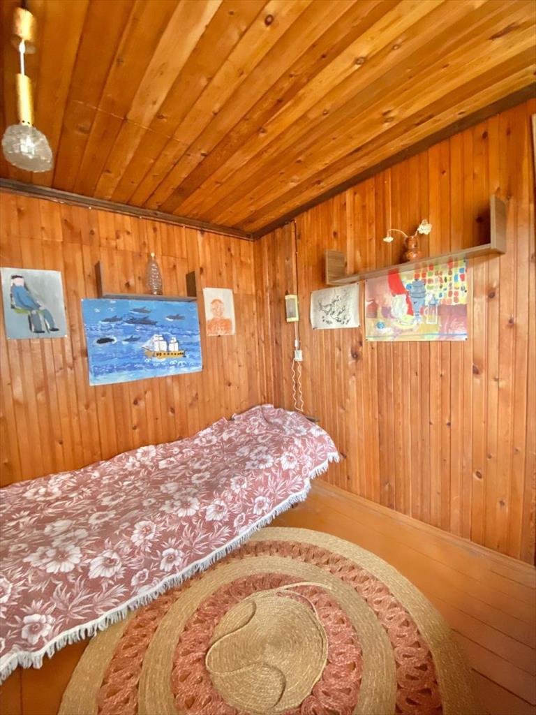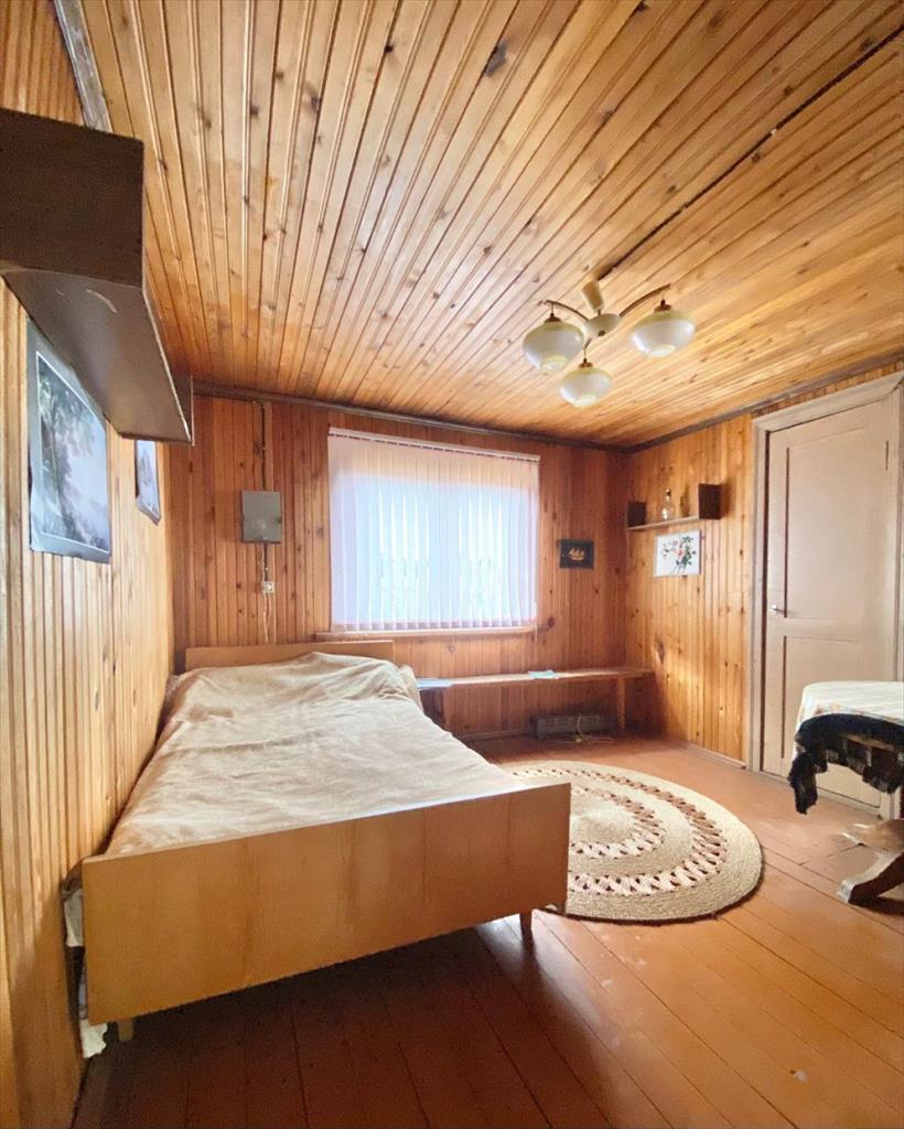 Дом размером 6х8, фундамент ленточный. Дом высокий, под домом сухой подвал, который служит для хранения домашних заготовок, а также лодочных моторов, резиновой лодки, инструментов, веников для бани и прочего.Дом из бруса дополнительно обложен кирпичом, что позволяет сохранить дому качества деревянного дома и в тоже время не промокать в дожди и снегопады. Дом сухой и теплый. Стены внутри обшиты вагонкой. Отопление осуществляется печью-камином с воздуховодами в жилые помещения. Камин был сложен опытным специалистом-печником, с соблюдением всех требований, поэтому тепло во всем доме сохраняется и на весь следующий день, после того, как камин был протоплен. В доме две комнаты и кухня, а также на мансарде две уютные, светлые спальни и гардеробная- кладовая.Электричество 15 кВт. Во дворе — колодец с родниковой питьевой водой. Есть баня из бруса, стены внутри осина. Душ оборудован в помещении помывочной.Туалет во дворе.