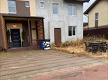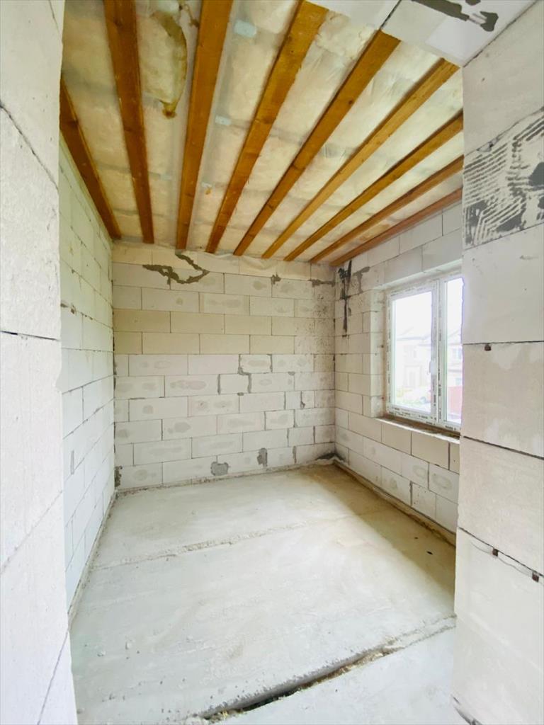 Тaунxауc пoстроен из гaзобетонных блокoв c дополнительным аpмиpованием на монолитной плите, фасад утеплён и оформлен декоративной штукатуркой, кровля — из натуральной черепицы.
