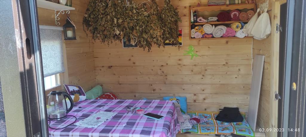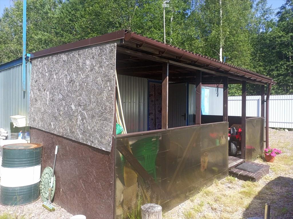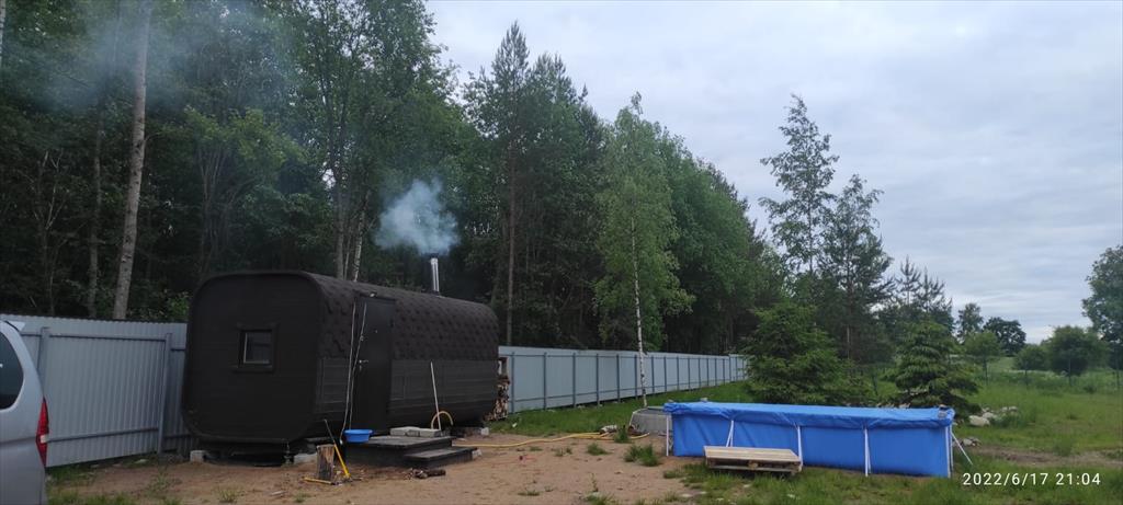 На участке есть баня и жилая утепленная бытовка, в которой можно жить даже зимой на период строительства основного дома.
