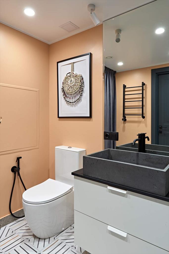 Дизайн выполнен в современном эклектичном стиле, где шведская планировка, модные тренды оформления, классическая мебель, словно только что из пятидесятых годов прошлого столетия, экзотический африканский декор - соединились, чтобы сформировать исключительно неординарное, яркое, сочное пространство для будущих жильцов.