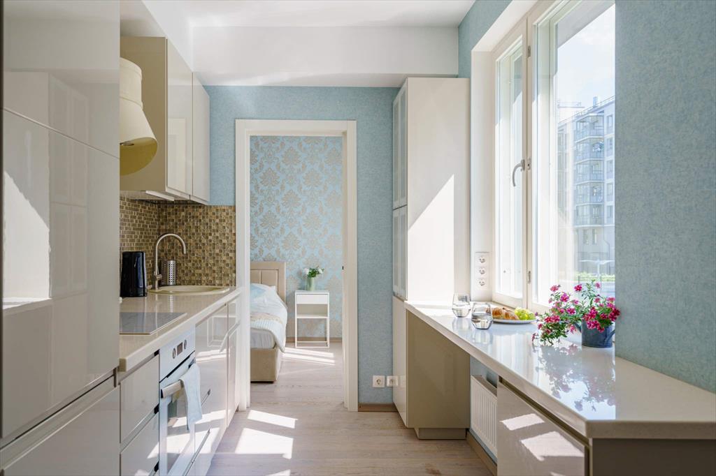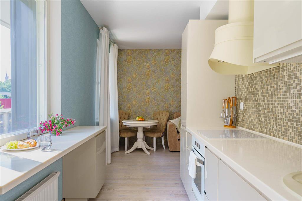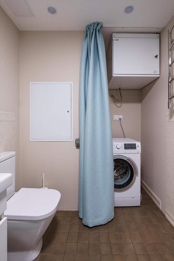 Кухня оборудована техникой: холодильник, посудомоечная машина. В ванной установлена стиральная машина и предусмотрен теплый пол.
