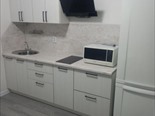 2 **Уютное пространство**: В квартире есть кухонный гарнитур, микроволновка, стиральная машина, стол, двухспальная кровать с хорошим матрасом, а также места для хранения вещей.