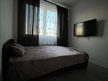 2 **Уютное пространство**: В квартире есть кухонный гарнитур, стол со стульями, двухспальная кровать с хорошим матрасом, а также телевизор и необходимая бытовая техника.