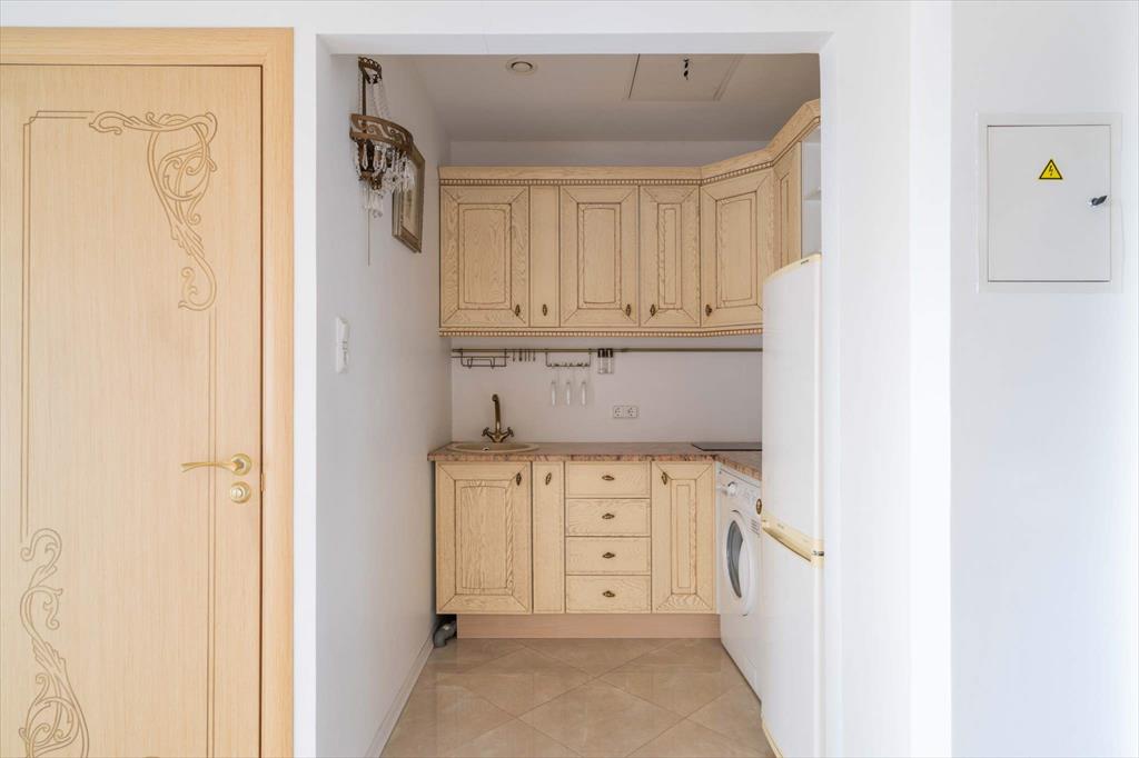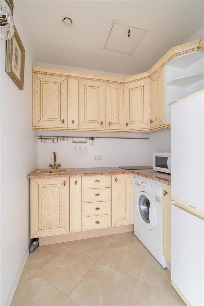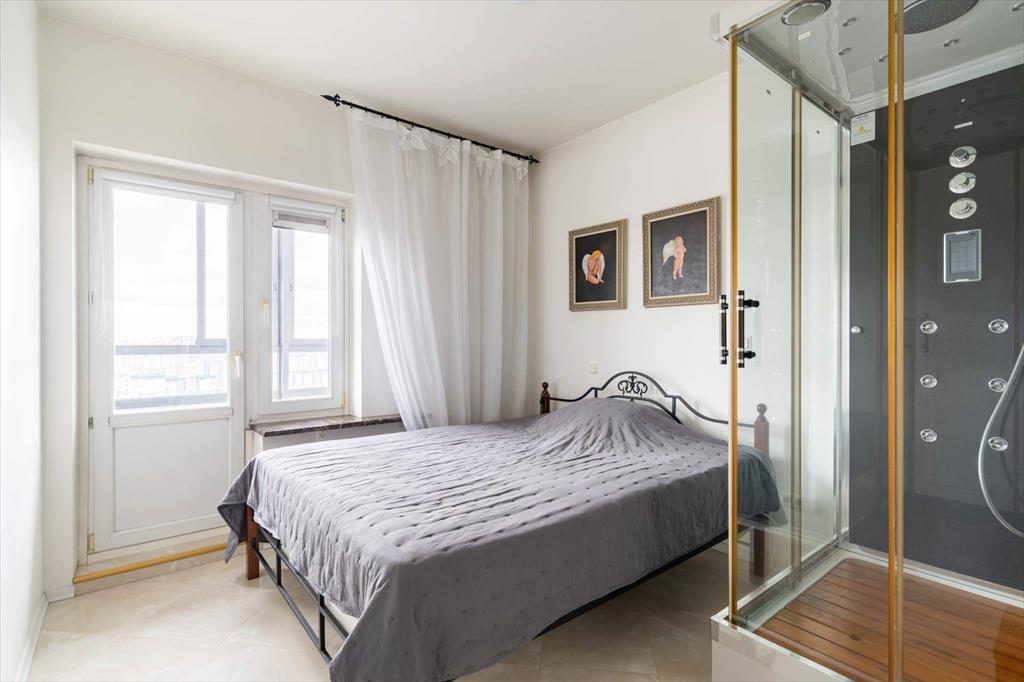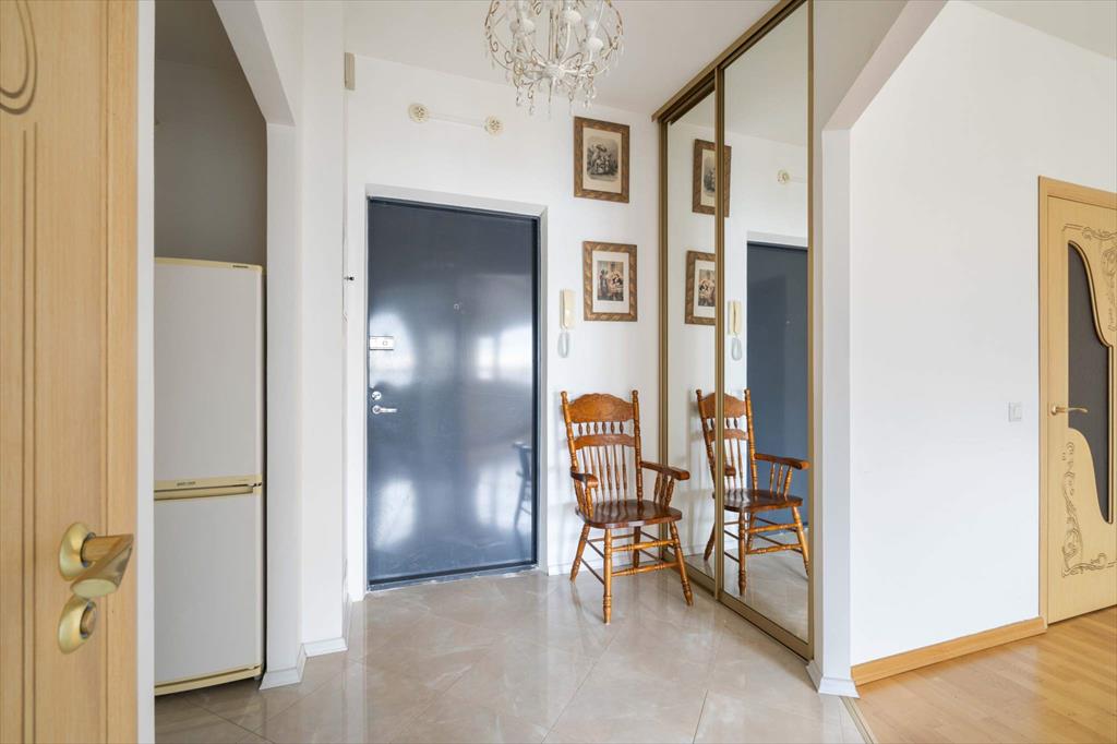 Дизайн выполнен в светлых приятных оттенках с темными акцентами. В квартире есть необходимая бытовая техника: варочная панель, микроволновая печь, стиральная машина, холодильник. Изюминкой квартиры является душевая кабина с функциями гидромассажа и хромотерапии производства Германии. Просторная квартира предоставляет возможность организовать пространство на свой вкус: по Вашему желанию может быть докуплена необходимая мебель. Интерьер квартиры дополнен интересными картинами.