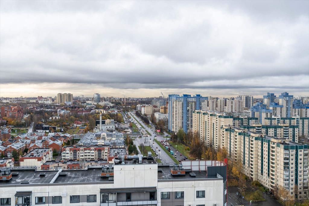 С балкона открывается вид на исторический центр Санкт-Петербурга.
