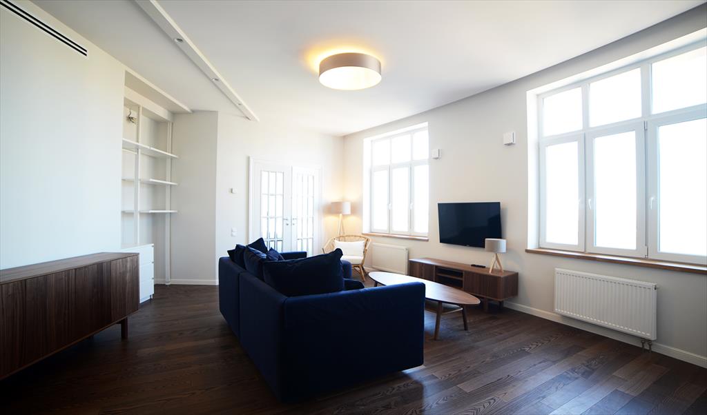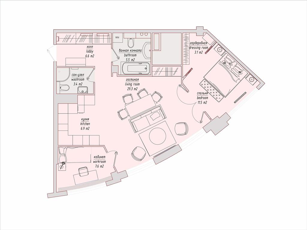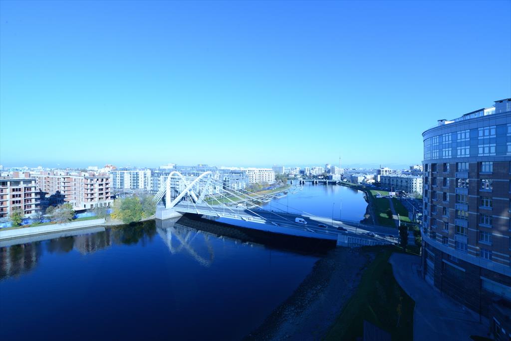 Квартира расположена в комплексе «Премьер Палас», который находится на набережной Адмирала Лазарева, напротив Крестовского острова. Из окон открываются живописные виды на воду и историческую часть города.