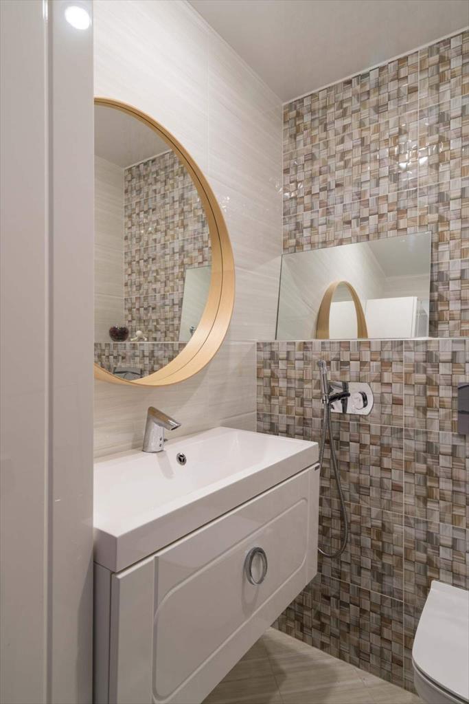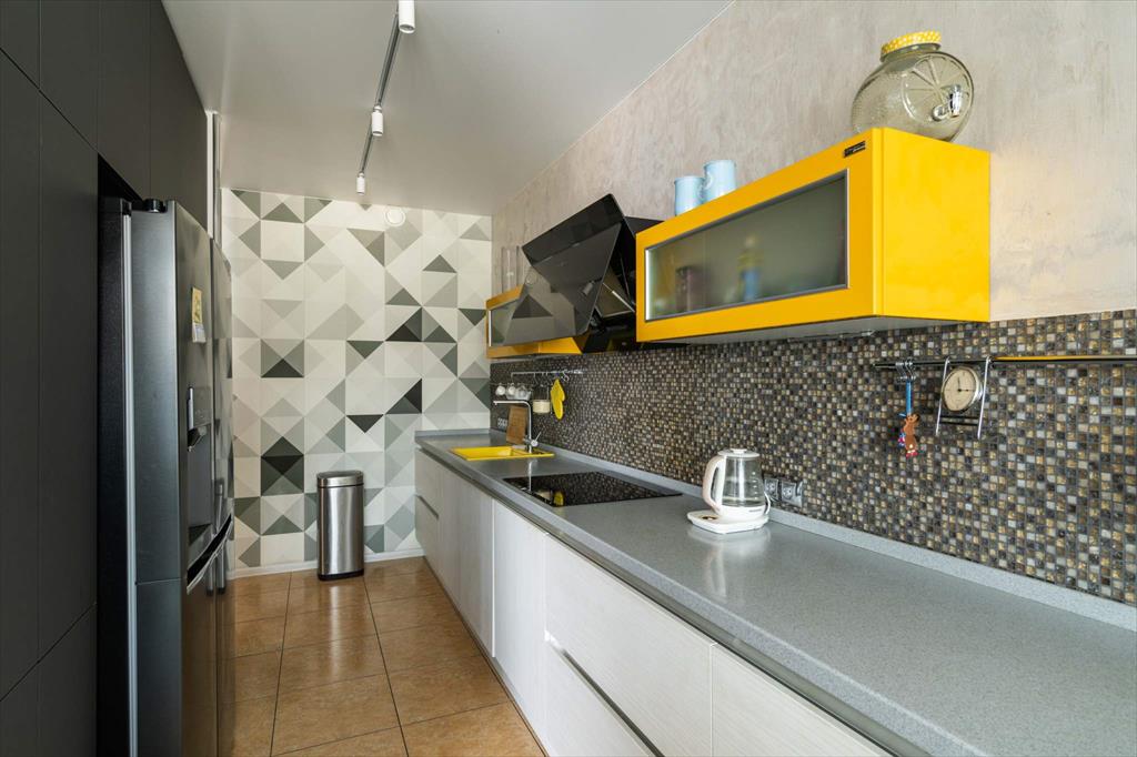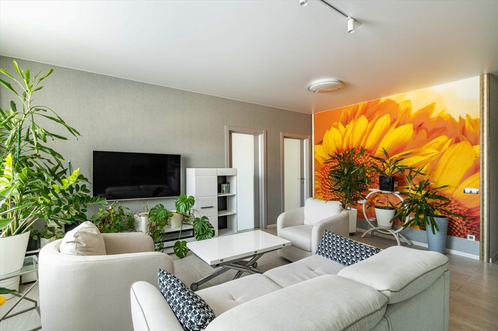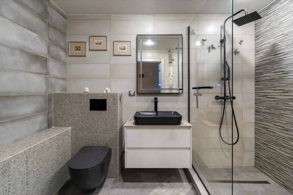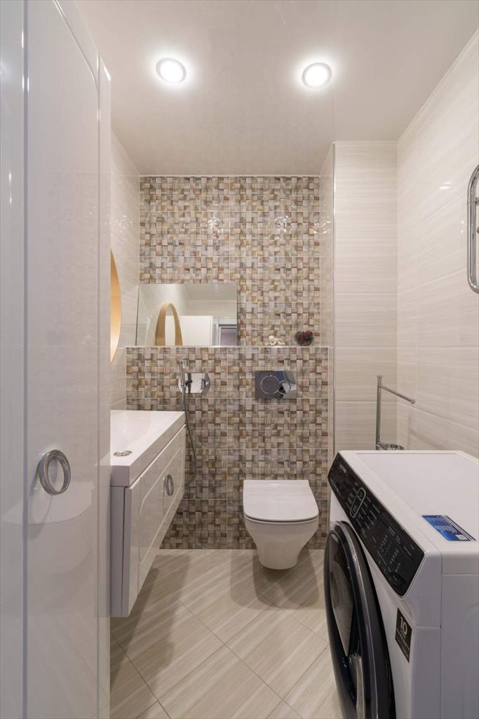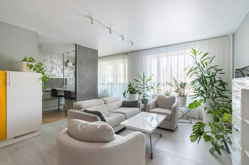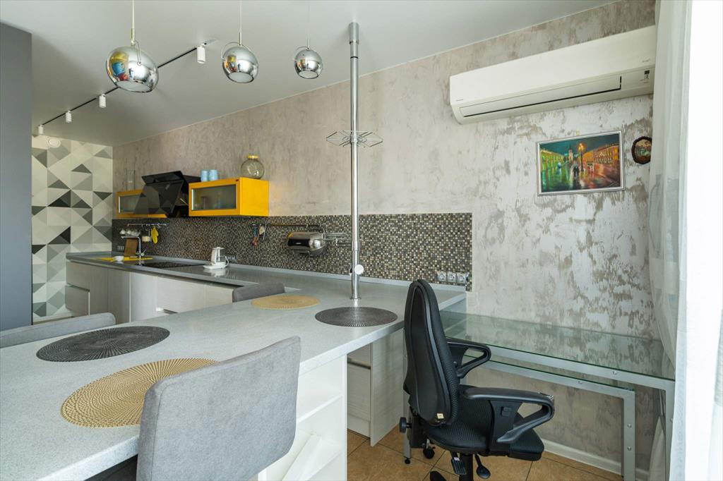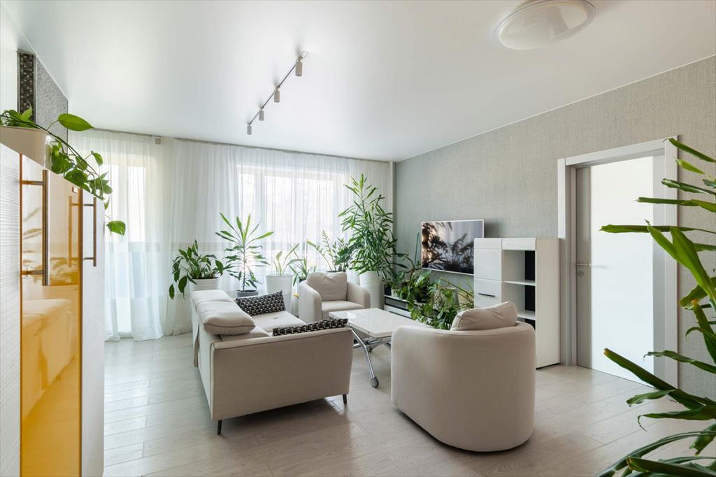В квартире имеются большая, светлая и уютная кухня-гостиная, две отдельные спальни, одна из которых с гардеробной, два санузла и еще одна отдельная гардеробная. Квартира оборудована всей необходимой техникой: вместительный холодильник и дополнительная морозильная камера, кондиционер, варочная панель, духовой шкаф, микроволновая печь, телевизор, посудомоечная машина и измельчитель отходов. Кроме того, оба санузла оснащены теплым полом. В кухне-гостиной располагается укомплектованное рабочее место, а утепленный балкон позволяет наслаждаться им круглый год. Два вместительных гардероба — один в главной спальне, а второй в коридоре — помогут организовать пространство и удобно хранить вещи.